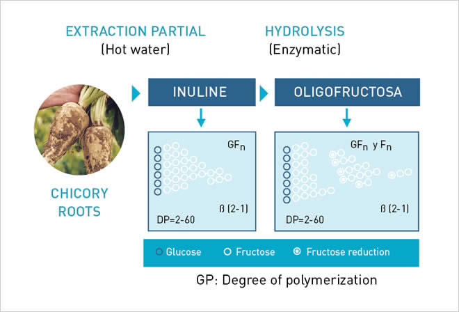 The use of prebiotics derived from the chicory root is widely known in human diets. The same happens in animal nutrition, inulin and oligo fructose have been shown to be beneficial both in intestinal health and in zootechnical performance.